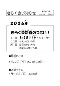 きらく会のお知らせ(令和7年1月号)